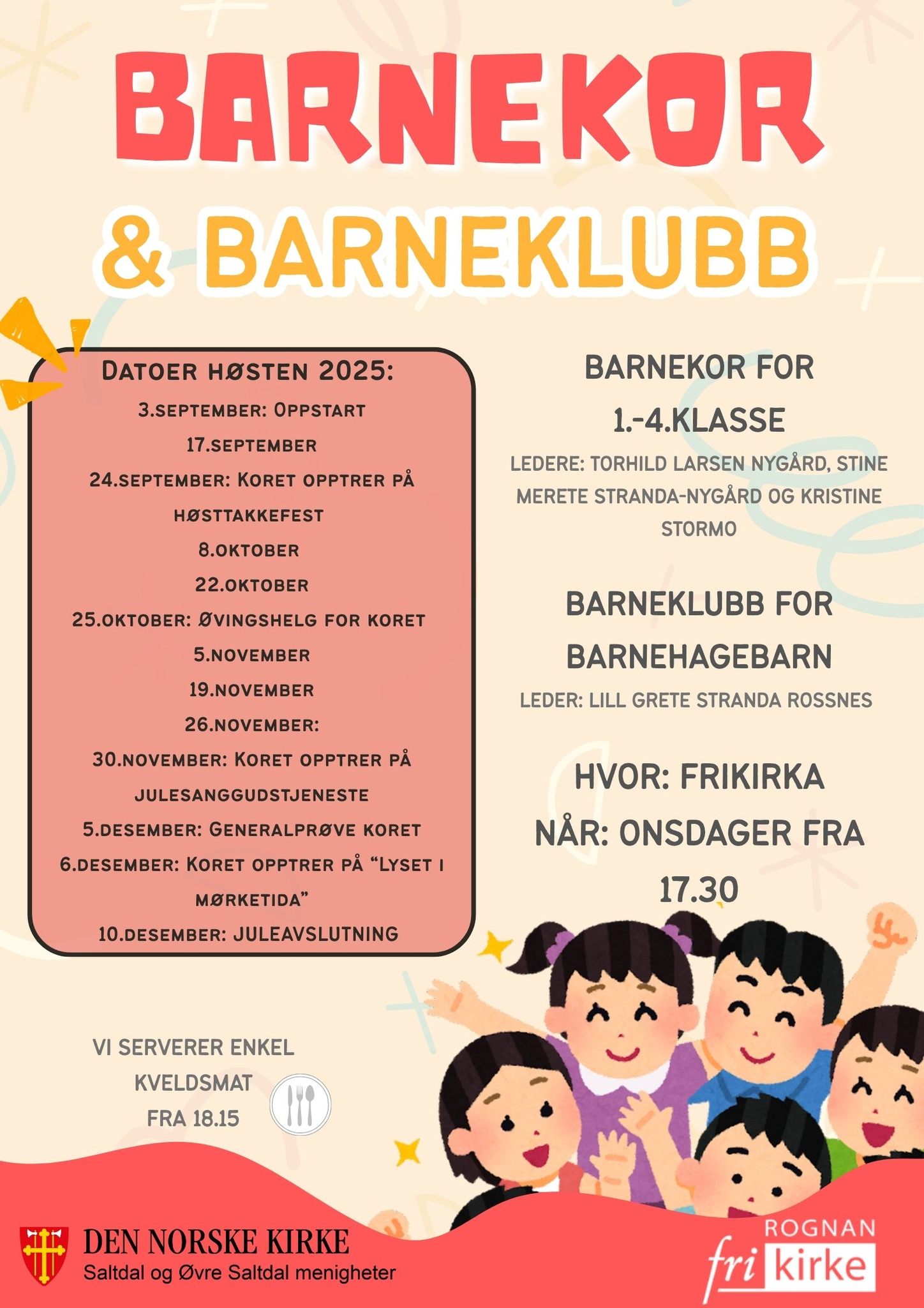 Barn og deres familier har en sentral plass i kirkene i Saltdal. Vi har som mål å bli gode på å dekke behov som småbarnsfamilier har i hverdagen og fylle tiden med meningsfulle treffpunkt og opplevelser.